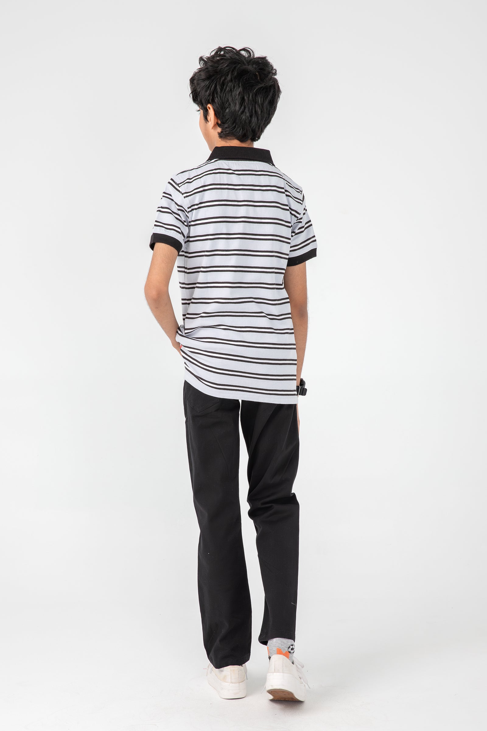 بولو مصبوغ بخيوط باللونين الأسود والأبيض
