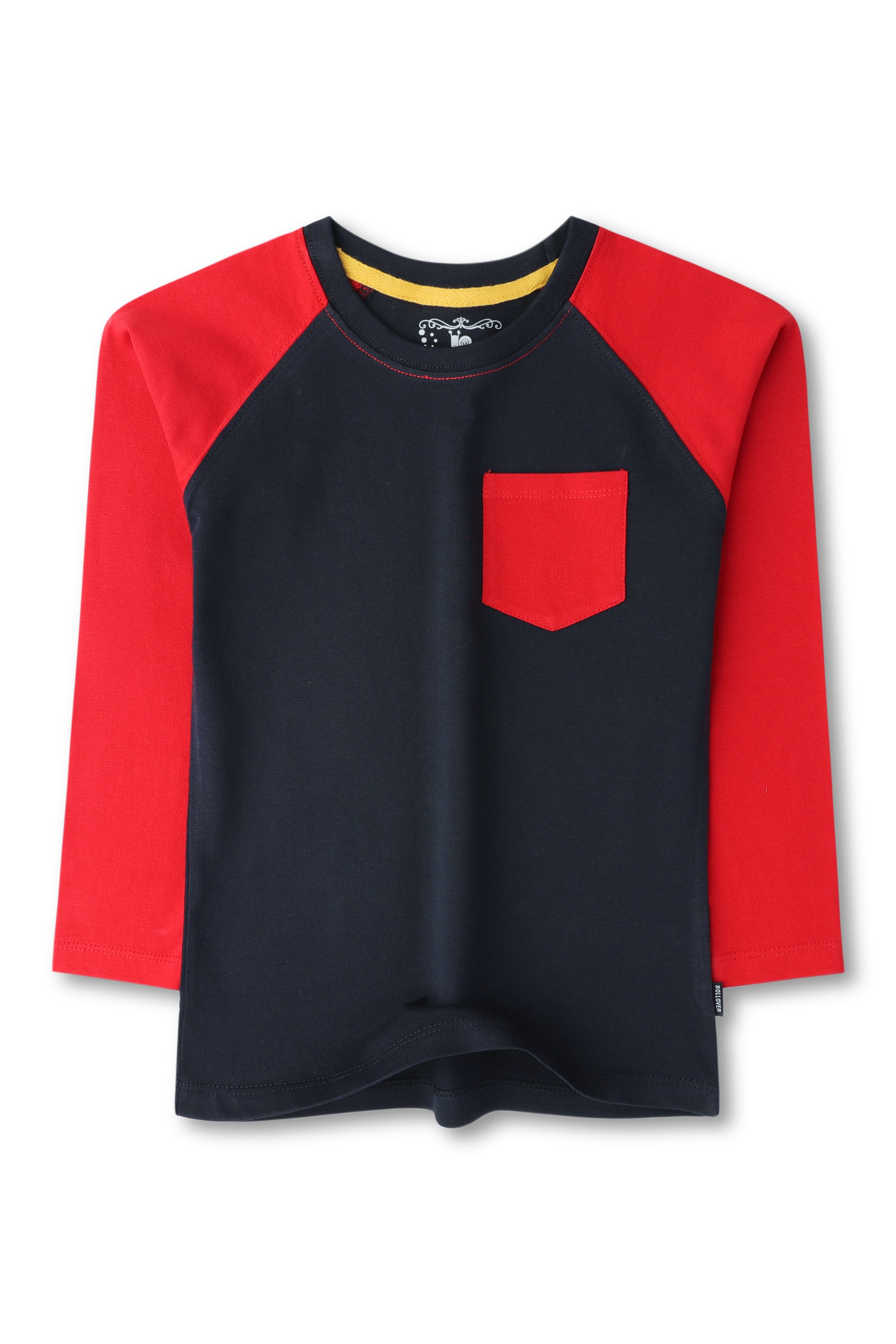 دع طفلك يتألق بهذا التي شيرت باللونين الكحلي والأحمر بتصميم راجلان. مصنوع من نسيج جيرسيه ثقيل، وتضيف الأكمام الطويلة والجيب الأحمر على الصدر لمسة من التميز، مما يجعل هذا التي شيرت ليس أنيقًا فحسب بل ممتعًا للارتداء سواء مع الجينز المفضل لديه أو تحت سترة، سيواكب هذا التي شيرت متعدد الاستخدامات أسلوب حياته النشيط.
