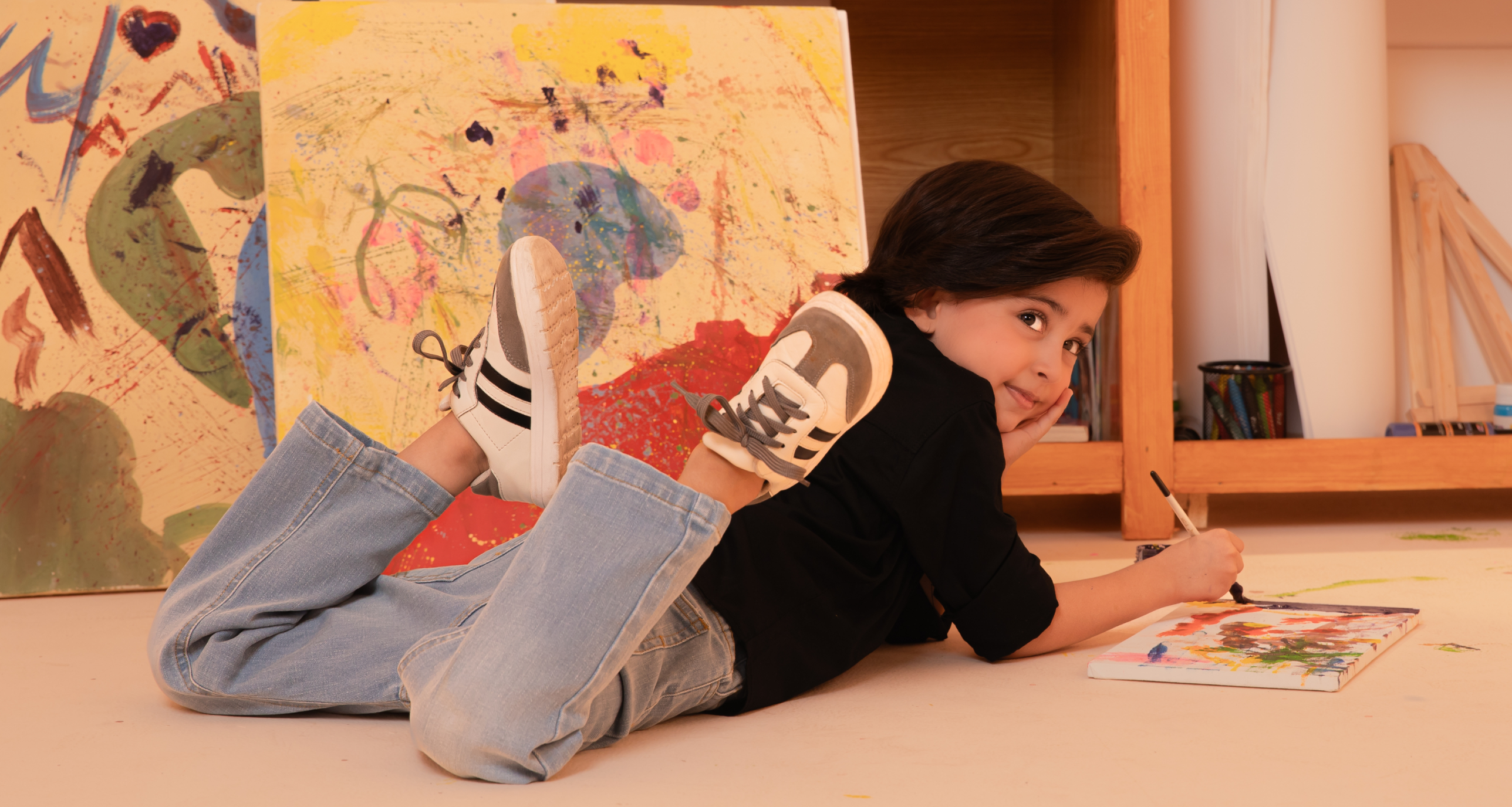 تلتقط جلسة التصوير ضحكات عفوية ونظرات فضولية ولحظات تركيز بينما يحوّل الفنانون الصغار خيالهم إلى حقيقة.
