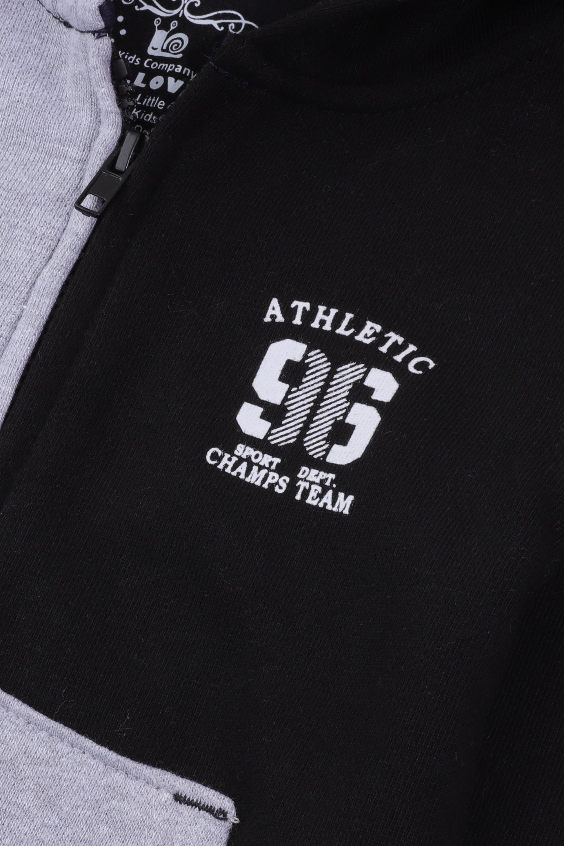 تم تصميم هذا الهودي العصري المصنوع من قماش تيري الأسود والرمادي للأولاد الذين يحبون اللمسة الرياضية. توفر الأصفاد والحاشية المضلعة باللون الأسود المتباين لمسة نهائية أنيقة، بينما يوفر الجيبان الأماميان الدفء والعملية. مع رسومات جريئة على الصدر، يجمع هذا الهودي بين الأناقة والراحة، مما يجعله مثاليًا للأيام النشطة أو النزهات غير الرسمية.