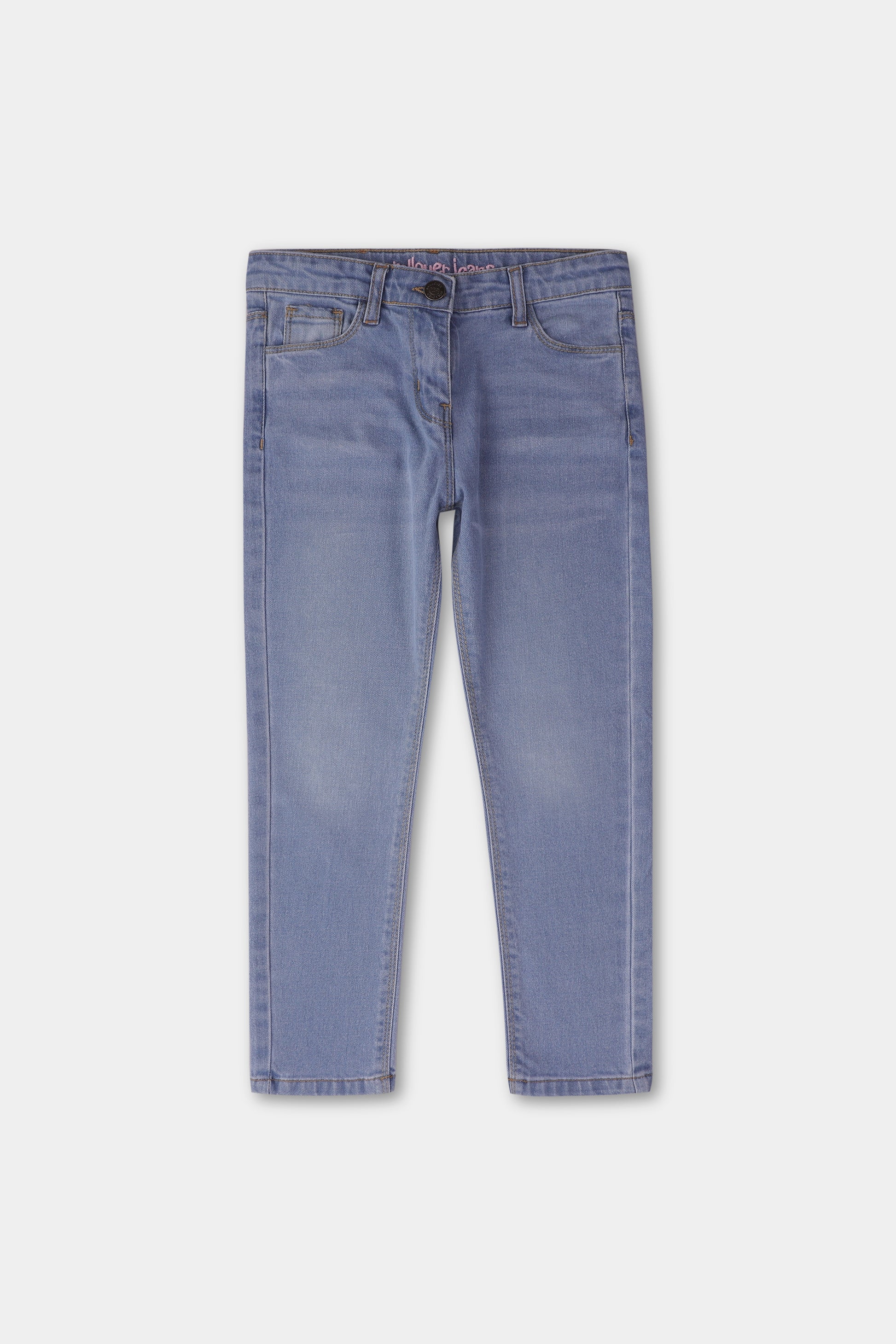 يتميز بنطلون الجينز هذا باللون الأزرق الفاتح بلمسة باهتة خفيفة على الفخذين وتأثير غسيل عتيق، مما يضيف ملمسًا وعمقًا للمظهر. صُمم بقصة ضيقة ومستدقة مع تصميم كلاسيكي بخمسة جيوب، ويوفر مقاسًا رائعًا ومريحًا للارتداء اليومي.