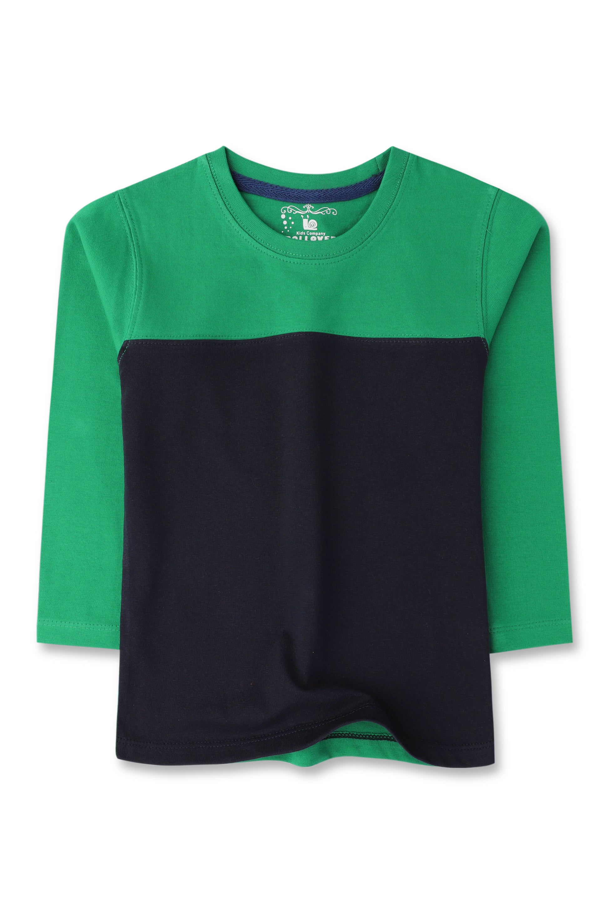 ارتقِ بخزانة ملابسه الكاجوال مع قميص الأولاد الأنيق باللونين الأخضر الداكن والأزرق الكحلي. مصنوع من قماش الجيرسيه الثقيل، مما يضمن الراحة والمتانة طوال اليوم. يتميز التصميم ثنائي اللون بمظهر عصري مع أكمام طويلة وياقة مستديرة، وهو رائع للارتداء في طبقات أو بمفرده