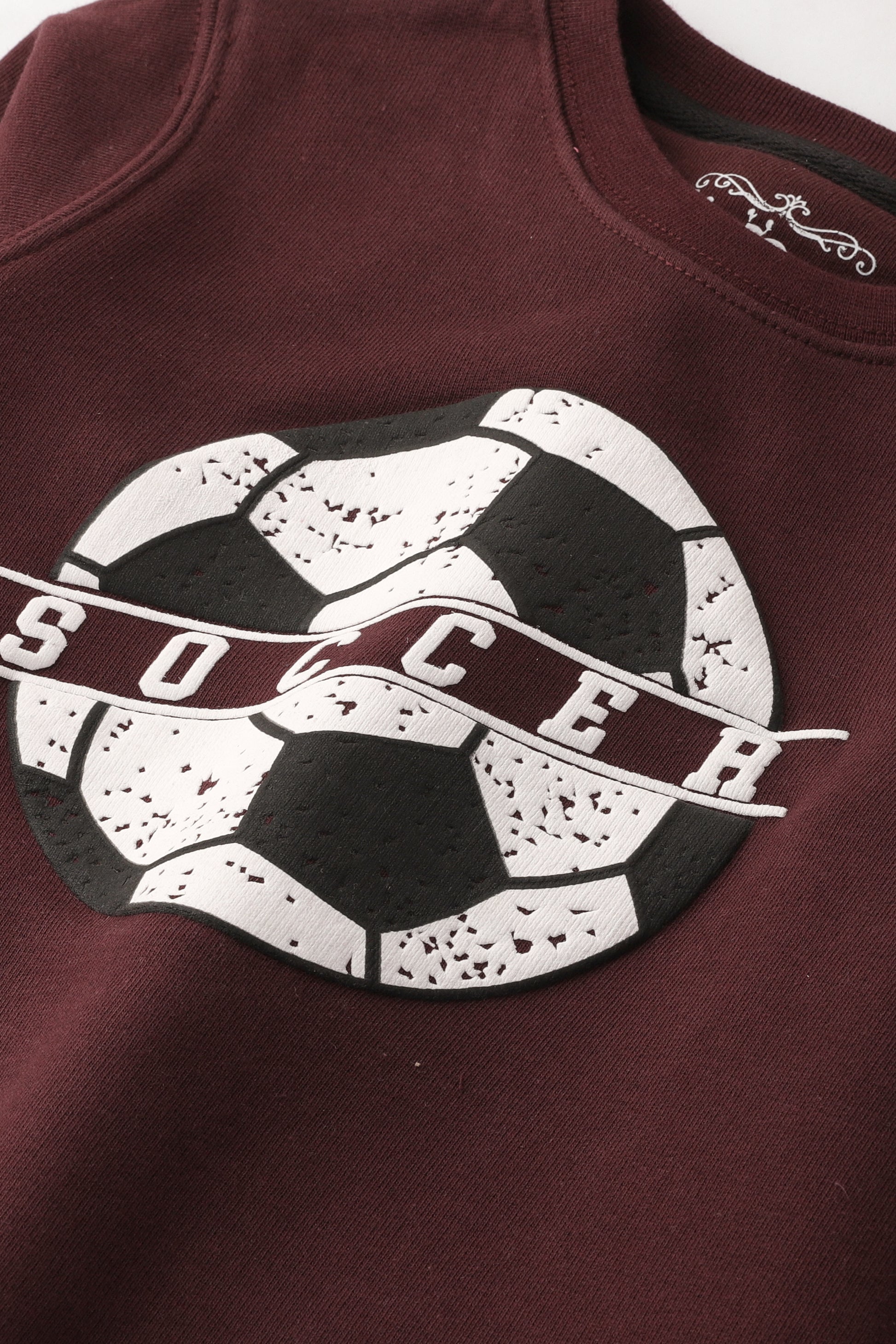 سويت شيرت أولادي بتصميم كرة قدم باللون العنابي