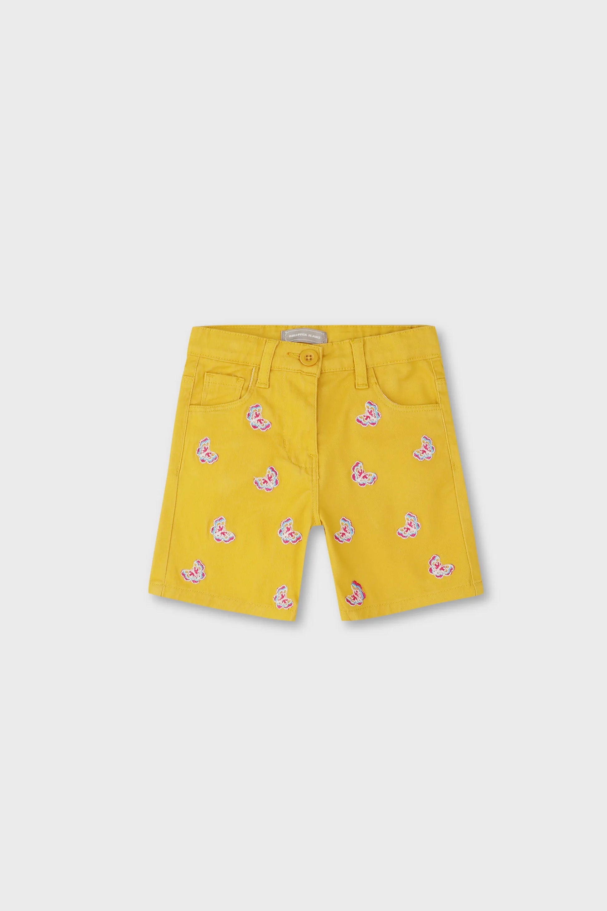 أبهجي يومها بشورت الفراشة المطرز. مصنوع من نسيج التويل الأصفر المتين، ويتميز هذا الشورت بتطريز فراشات ملونة في جميع أنحائه. يوفر التصميم الكلاسيكي بخمسة جيوب وإغلاق الزر الآمن والنسيج الناعم الراحة والأناقة. مثالي
