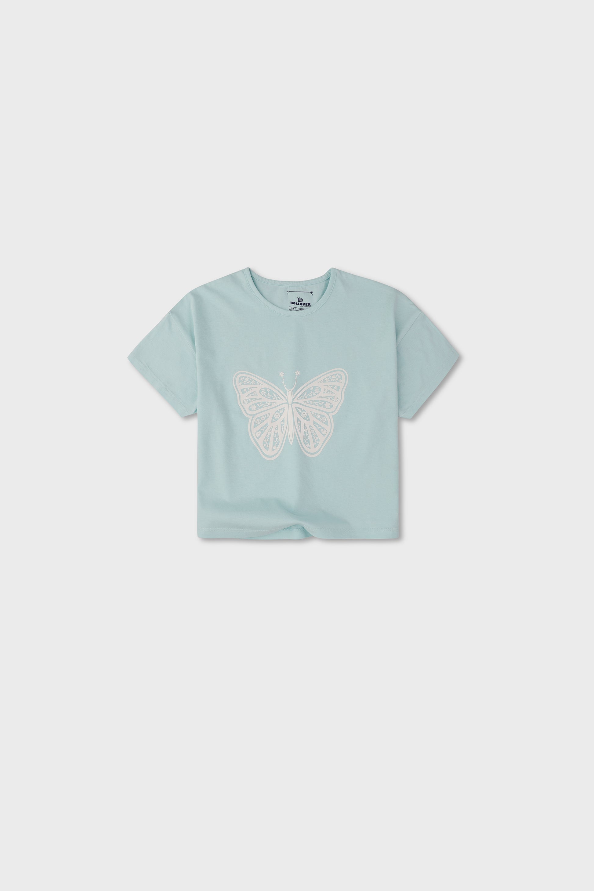 تي شيرت مريح بطبعة فراشة بلون النعناع