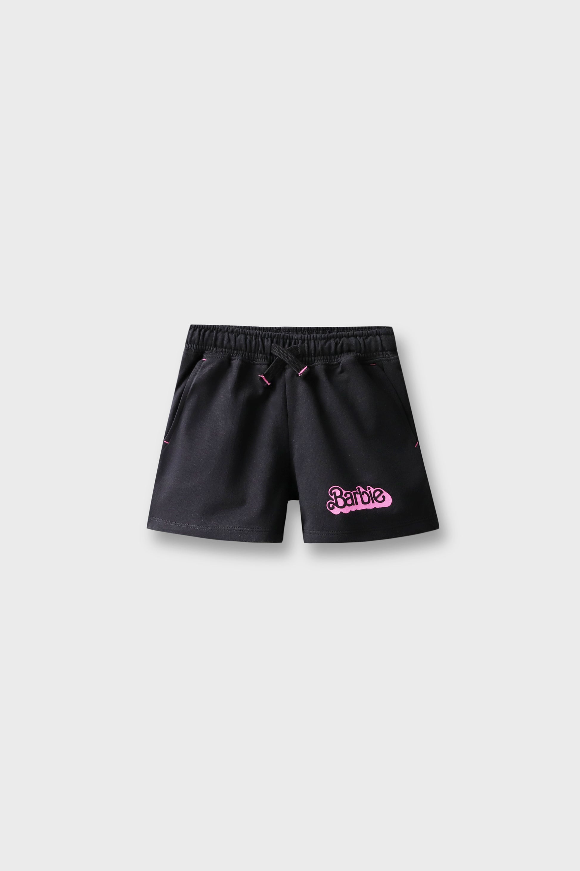 تجمع هذه الشورتات السوداء المصنوعة من قماش التيري بين الراحة اليومية ولمسة باربي المميزة. تتميز بشعار وردي مطبوع على إحدى الساقين وخياطة وردية دقيقة، مما يضفي عليها نعومة وجاذبية. يضمن الخصر المطاطي سهولة الارتداء، بينما توفر الجيوب الجانبية المزدوجة عملية. إنها قطعة أساسية مثالية لوقت اللعب مع لمسة عصرية.