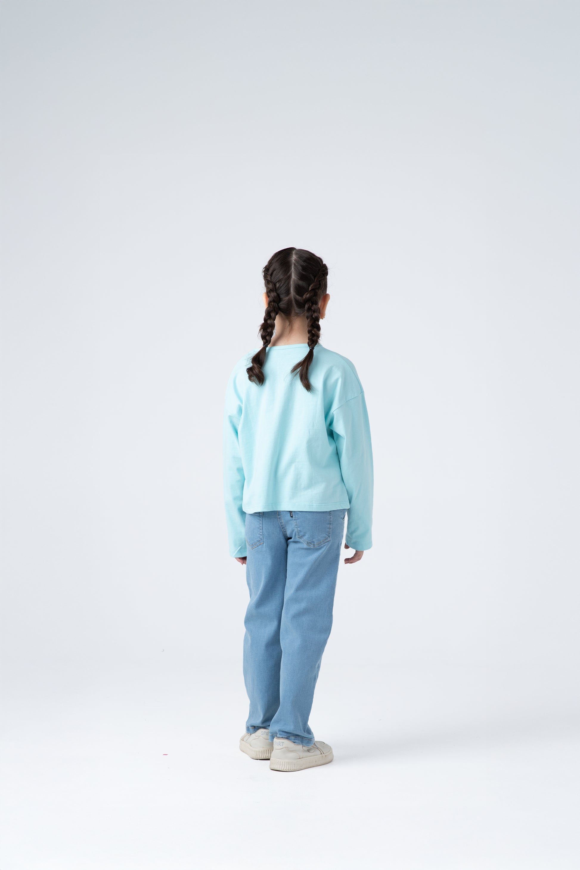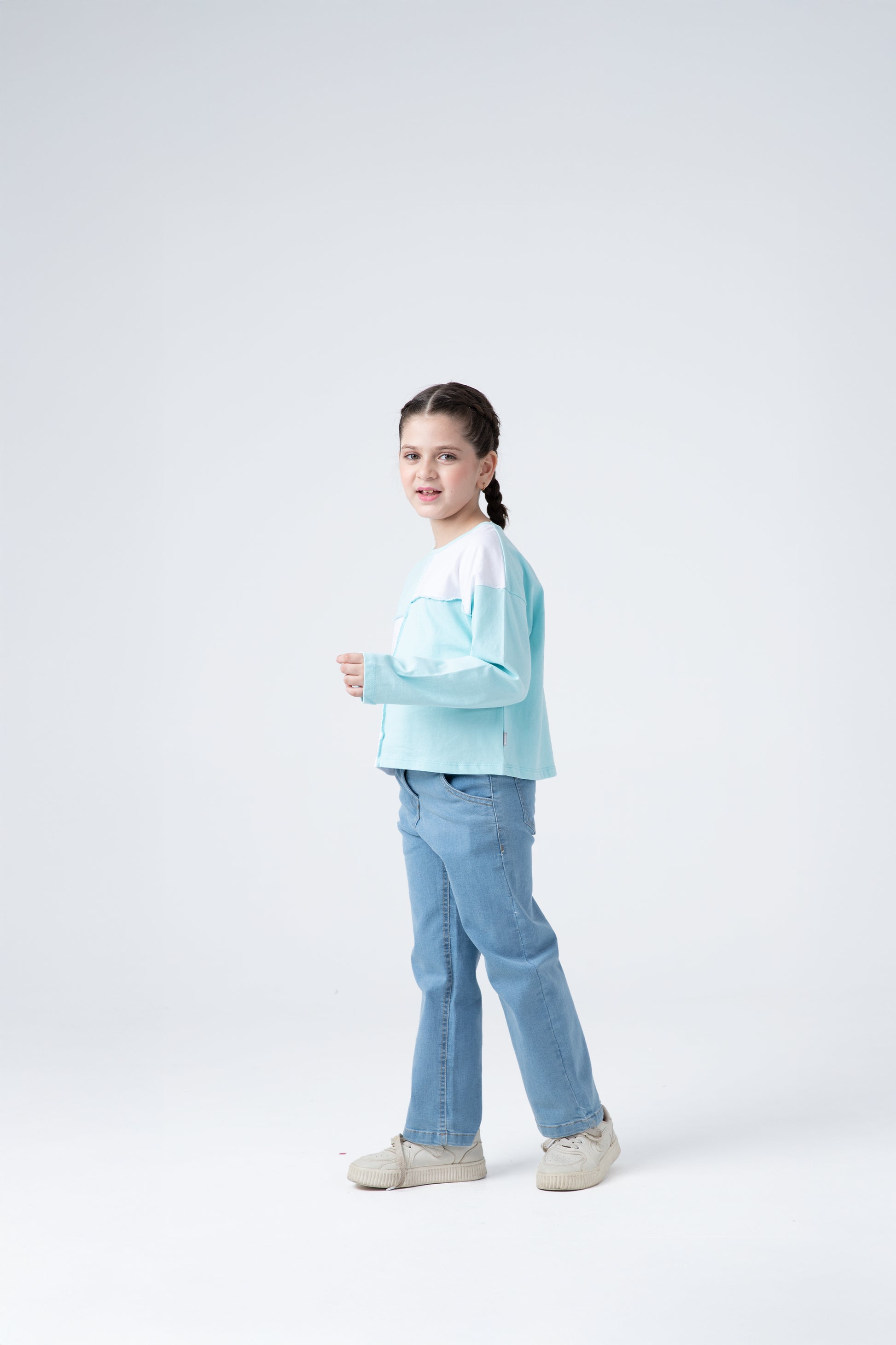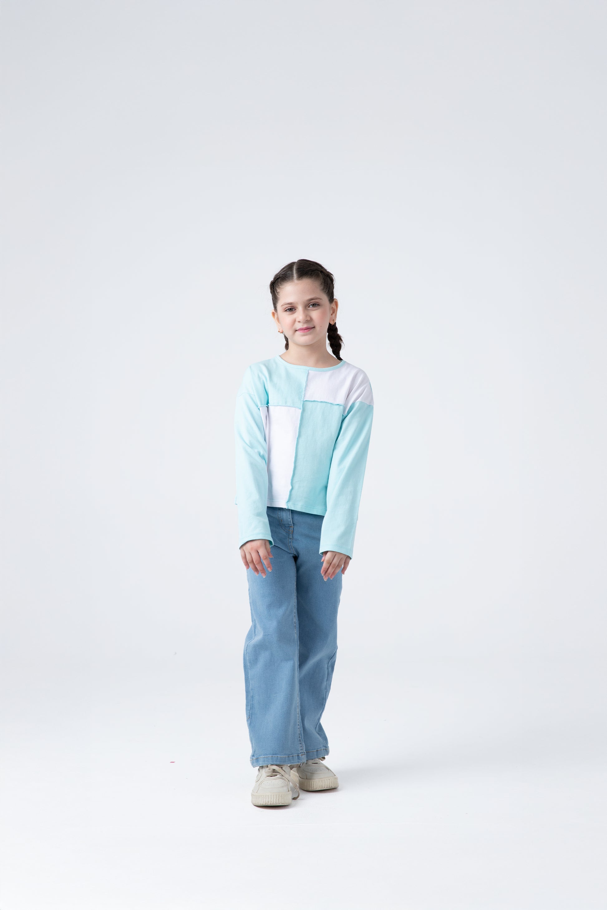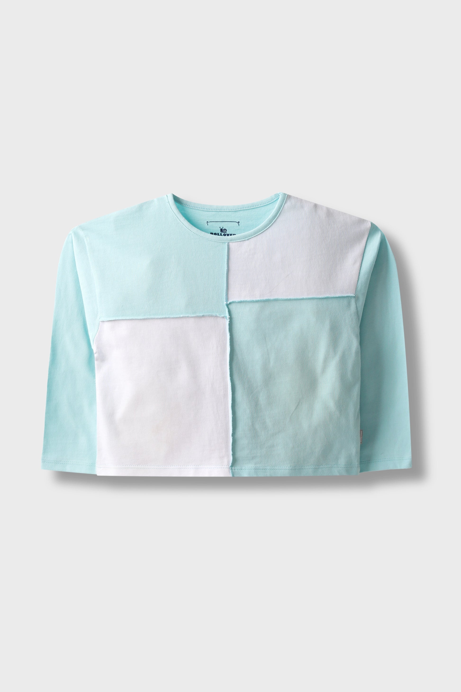 أضيفي لمسة عصرية إلى خزانة ملابسها مع هذا التيشيرت بلونين، الأزرق السماوي والأبيض. يجعله التصميم الواسع والمريح ذو الأكتاف المنسدلة والنسيج المحبوك المتين مثاليًا للعب اليومي. يمنحه مظهره ذو الكتل اللونية جاذبية عصرية ومتعددة الاستخدامات للمناسبات الخارجية أو المنزل.