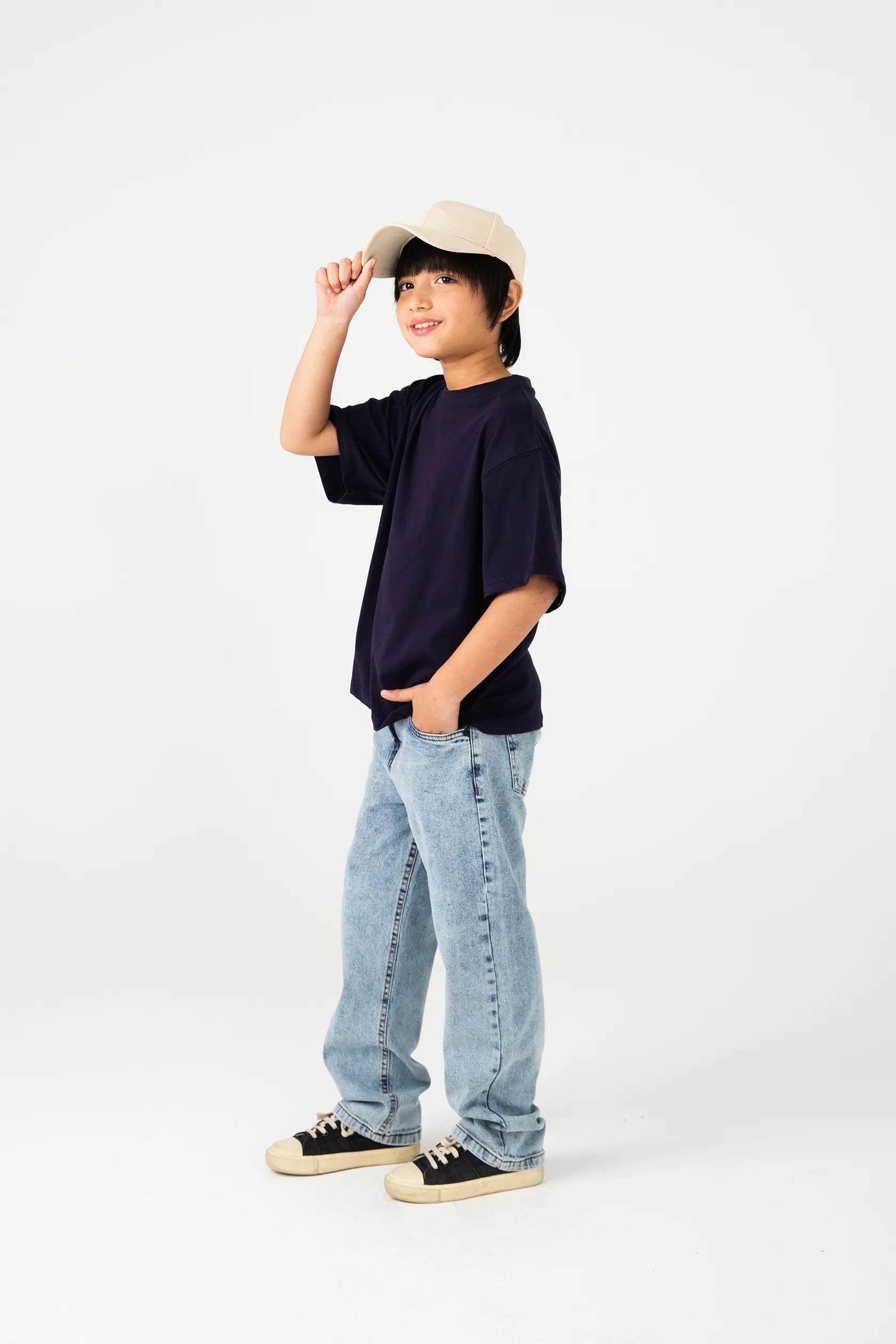 صُمم هذا التيشيرت باللون الأزرق الداكن من الجيرسيه لتوفير راحة فائقة، ويتميز بقصة فضفاضة مع أكتاف منسدلة وطول متوسط. قماش التريكو الناعم لطيف على البشرة، مما يجعله مثاليًا للارتداء اليومي، ومغامرات اللعب، والتنزهات غير الرسمية مع راحة تدوم طويلاً.