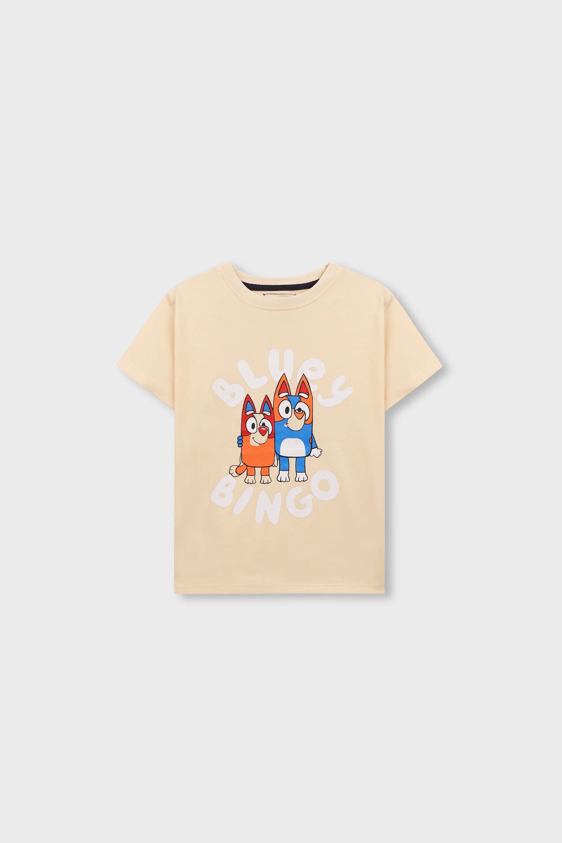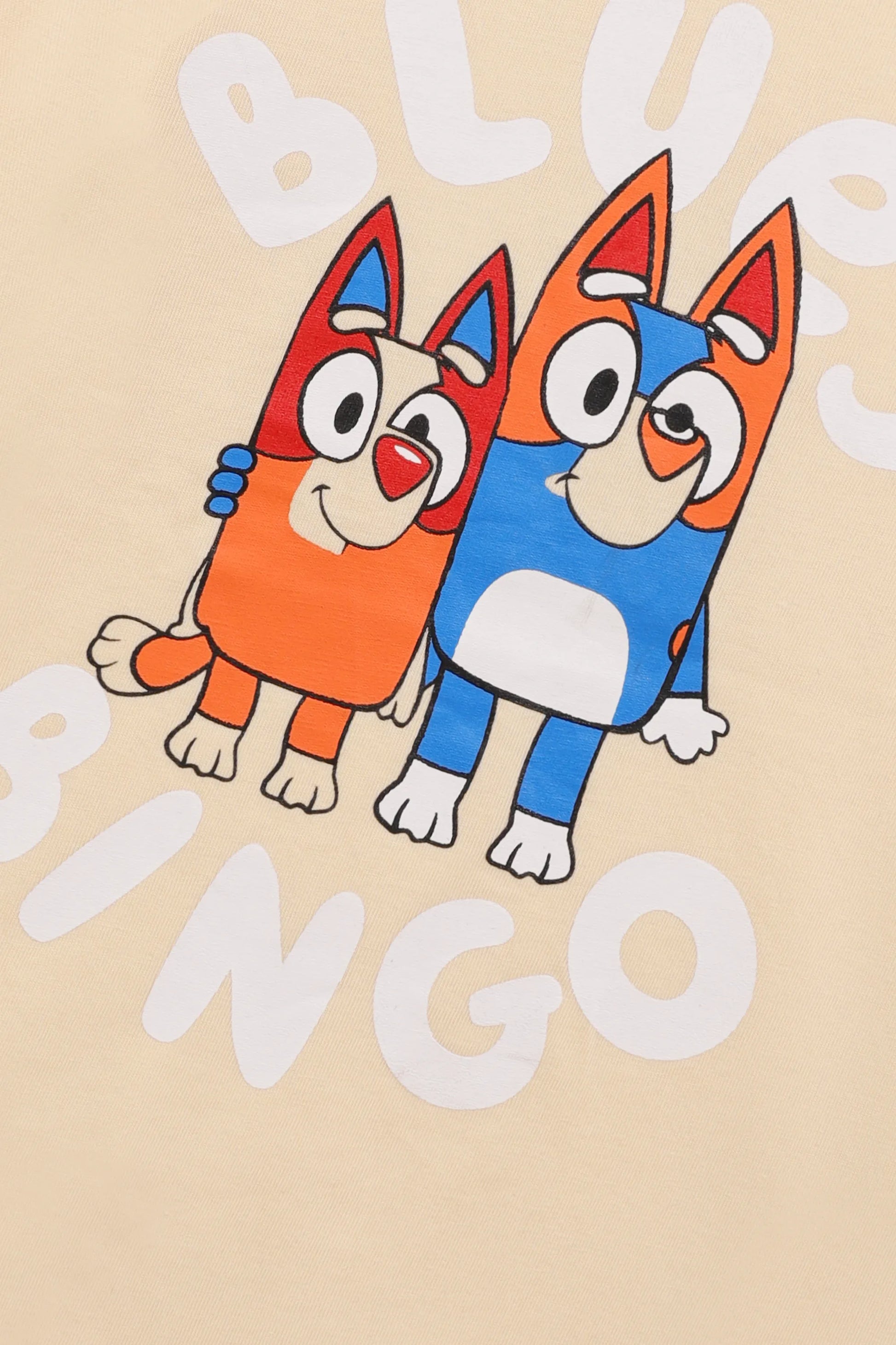 اجعل طفلك الصغير مستعدًا للمغامرة مع هذا التي شيرت بلون البشرة الذي يتميز بشخصيتي بينجو وبلووي المحبوبتين. يضمن نسيج الجيرسيه الناعم الراحة طوال اليوم، بينما تجعله الطباعة الجرافيكية الجريئة والممتعة خيارًا مثاليًا لأي نزهة غير رسمية أو وقت لعب و