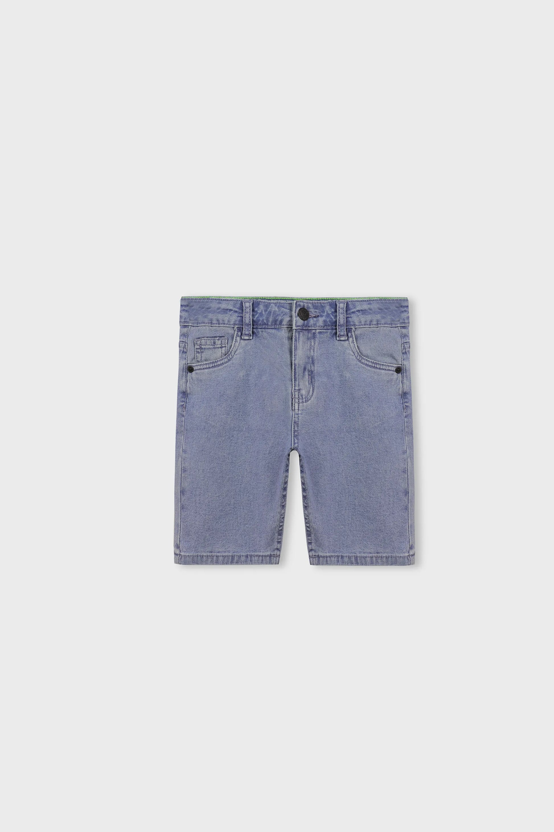 قصير ومرح يمكن الاعتماد عليه، صُمم هذا الشورت المصنوع من الدنيم الأزرق الفاتح بطول الركبة ليواكب كل قفزة وجري ومغامرة. مزود بزر أسود معدني يحمل العلامة التجارية، وتصميم جيوب كلاسيكي، ومسامير تقوية، وتفاصيل خياطة متينة، وحافة عادية،