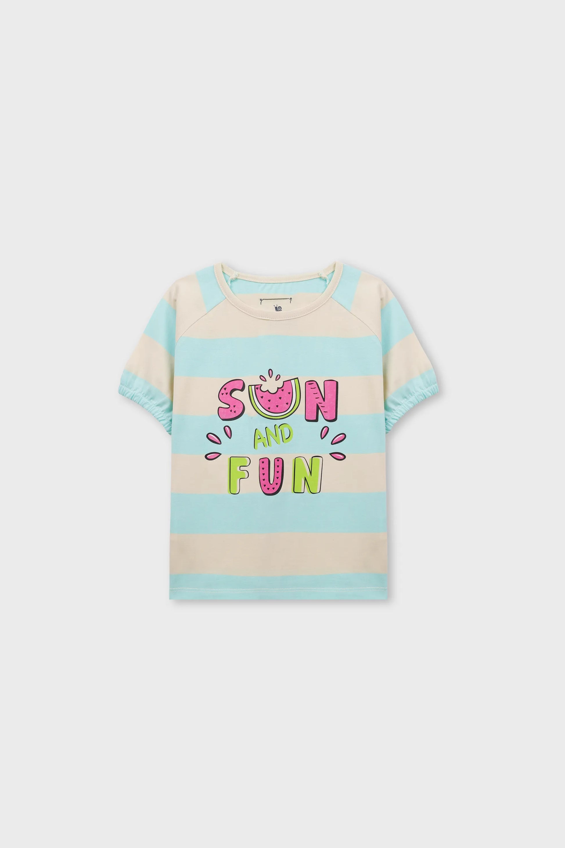 Dress her in this cheerful raglan tee featuring soft mint and skin hues. The loose fit and elastic sleeves offer a relaxed style that’s perfect for playtime or outings. With the "Sun and Fun" graphic, she’s sure to stay comfy and stylish all day lo