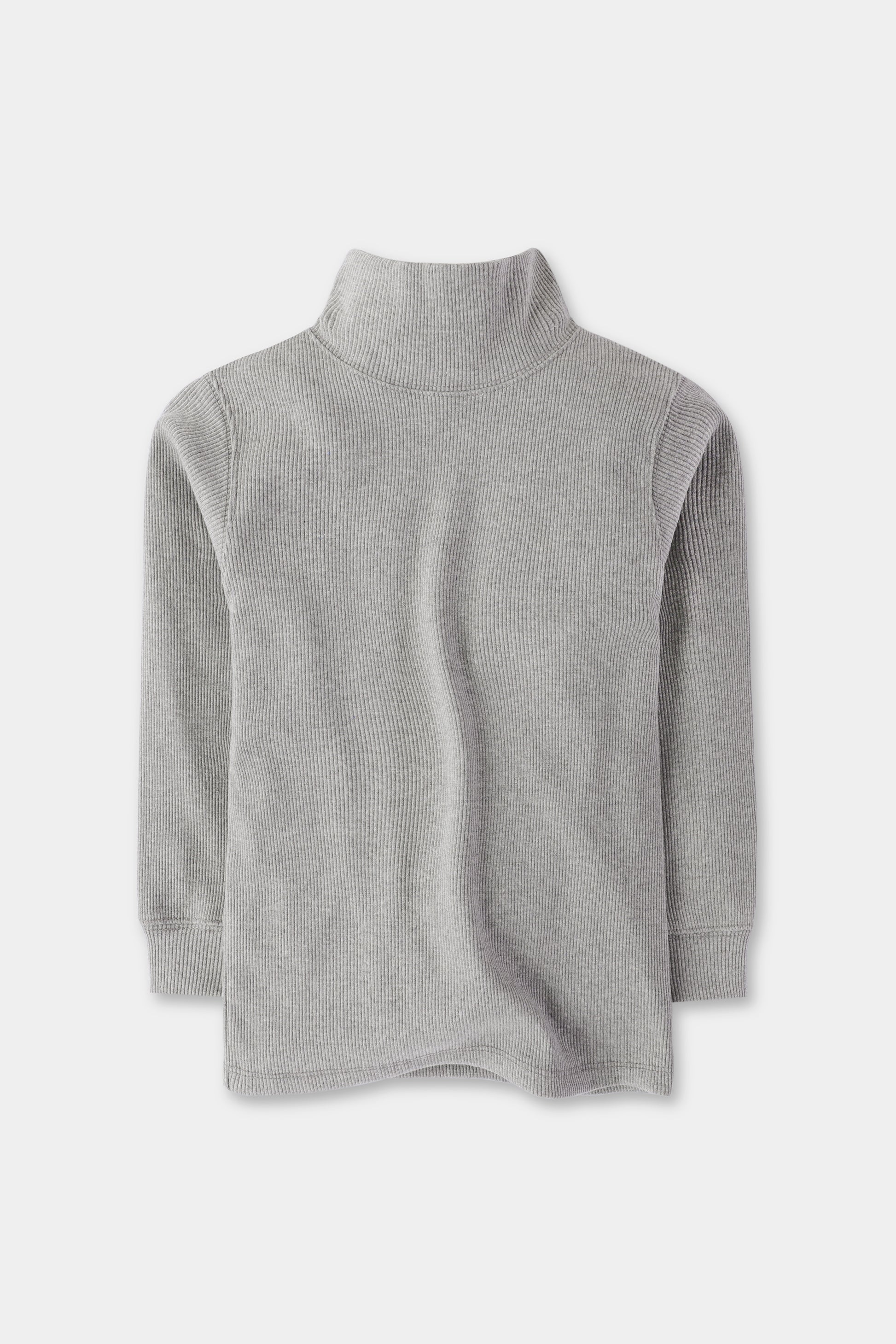 Made from high-quality lycra ribbed fabric, this boys' grey high-neck top is a versatile addition to any wardrobe. Its snug, stretchy fit and ribbed design provide comfort and warmth. The high neck adds extra coverage, making it ideal for cooler weather. Whether worn alone or layered, this top combines practical warmth with modern style.