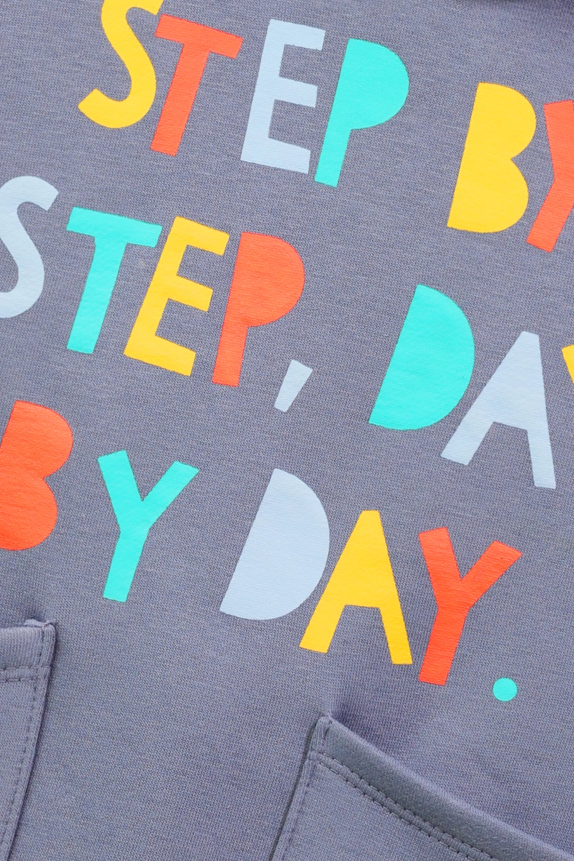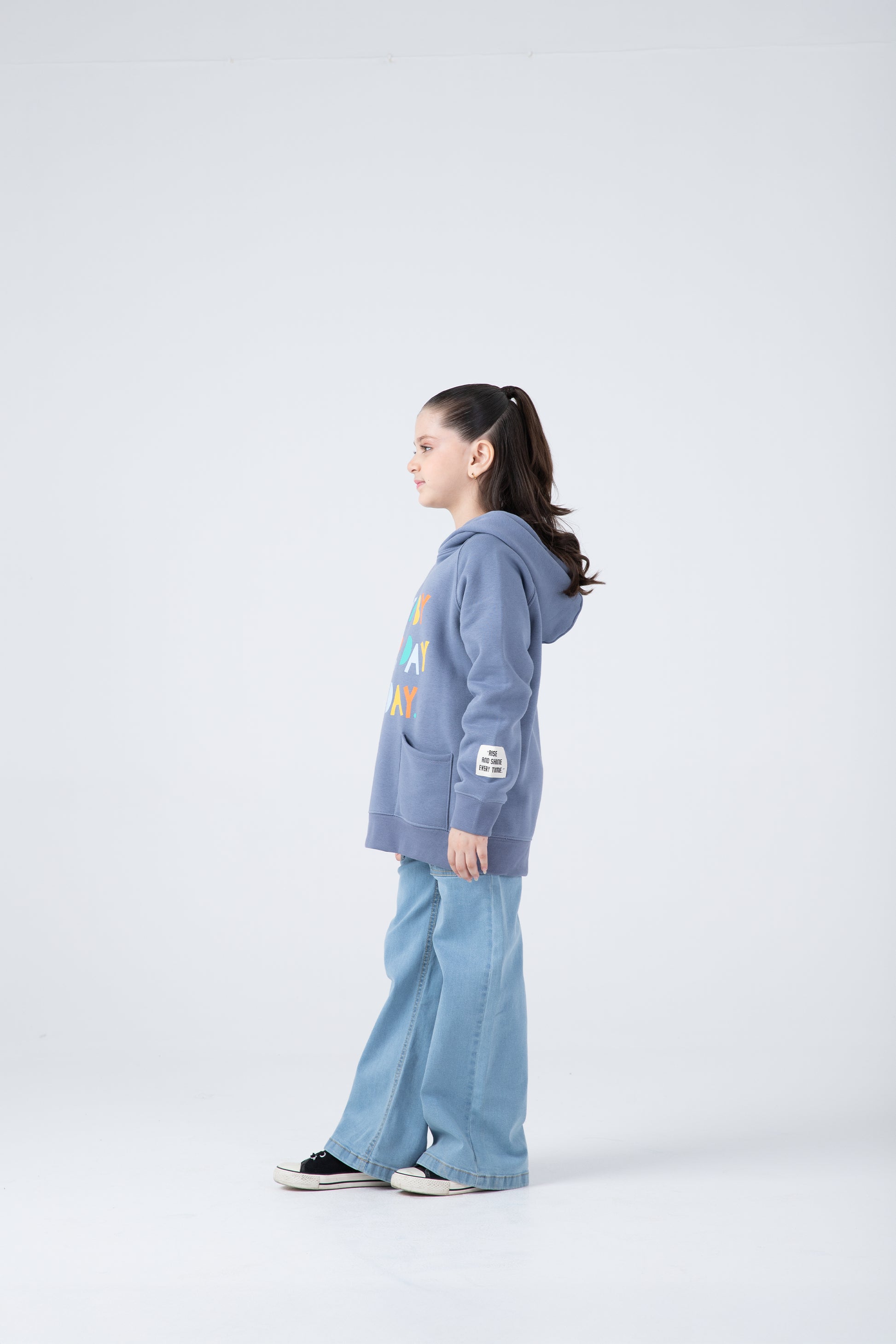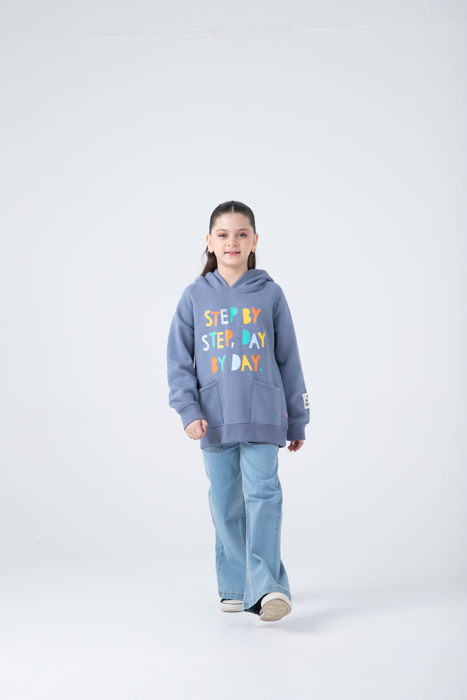This steel-Blue fleece hoodie is a stylish addition to her wardrobe. Highlighted by bold, colorful front graphics, it inspires positivity. The ribbed cuffs and hem ensure warmth, while the two patch pockets add functionality. A perfect blend of comfort and charm for cooler days.