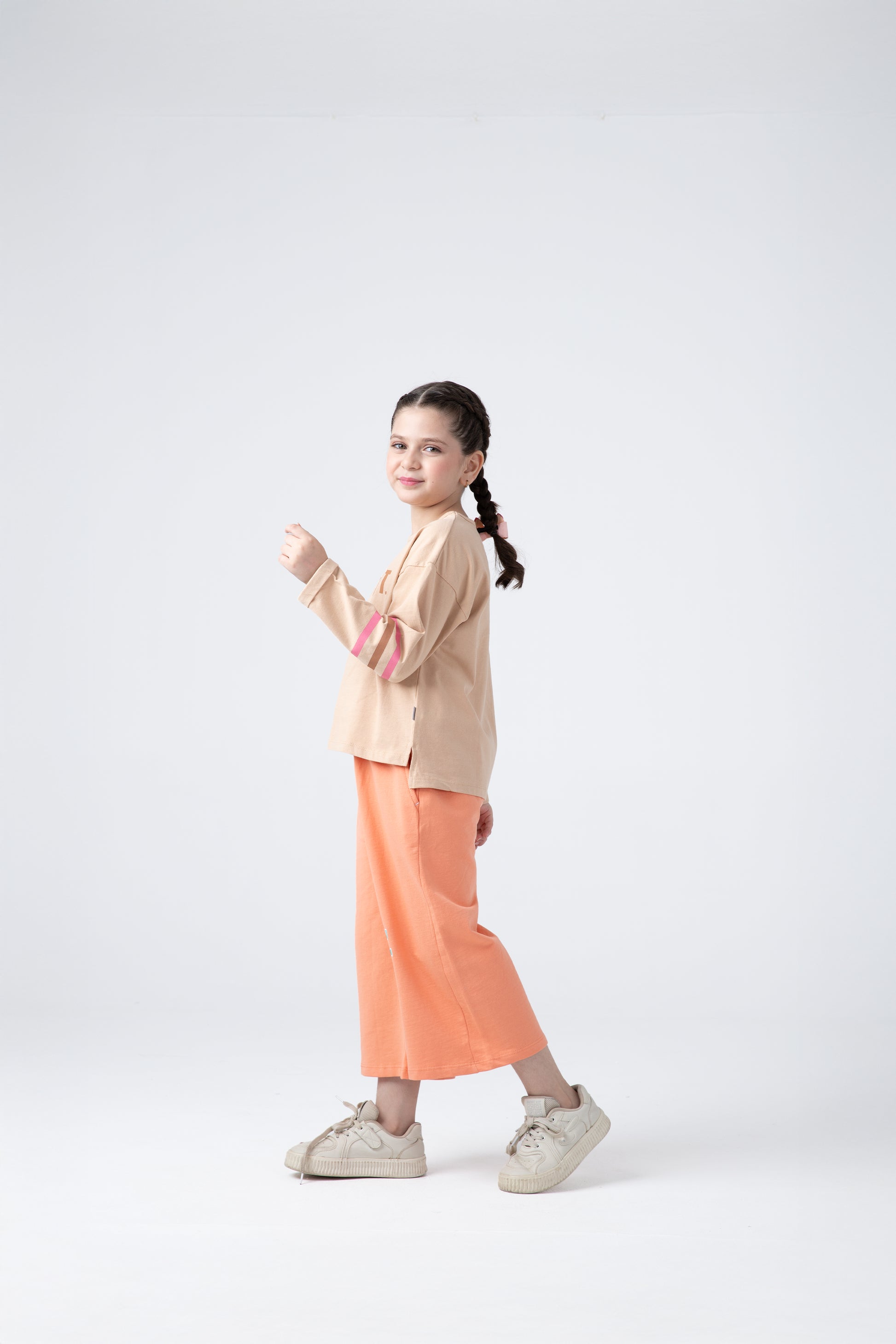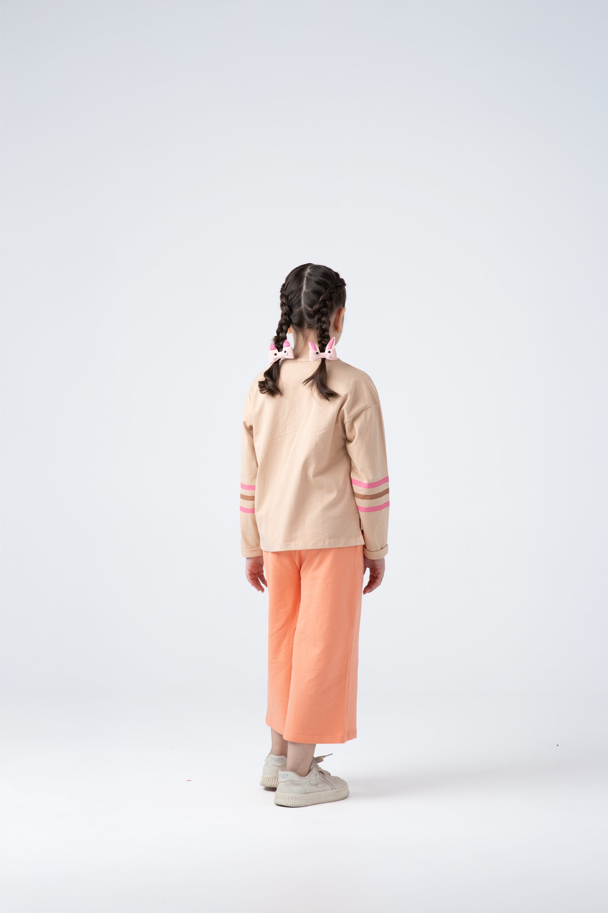 This beige drop-shoulder T-shirt brings bold energy with a front slogan and contrast sleeve stripes. Crafted in thick heavy jersey fabric, it offers warmth, softness, and everyday wearability. Perfect for layering or wearing solo—this is the ultimate mix of comfort and confidence.